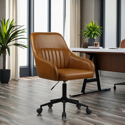 Silla de oficina de cuero PU Vintage con remaches, diseño ergonómico para vestíbulo comercial, ocio